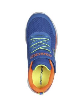 Zapatillas Skechers en color azul y naranja. Estos zapatos combinan un diseño fresco y moderno con una practicidad excepcional gracias a su cierre de velcro y sistema slip-on. La comodidad es una prioridad en estos deportivos, gracias a su acolchado interior y su suela que amortigua los pasos. Ya sea para hacer ejercicio, pasear o simplemente para añadir un toque de estilo a tu vestimenta diaria, estos deportivos Skechers en azul y naranja son la elección perfecta.